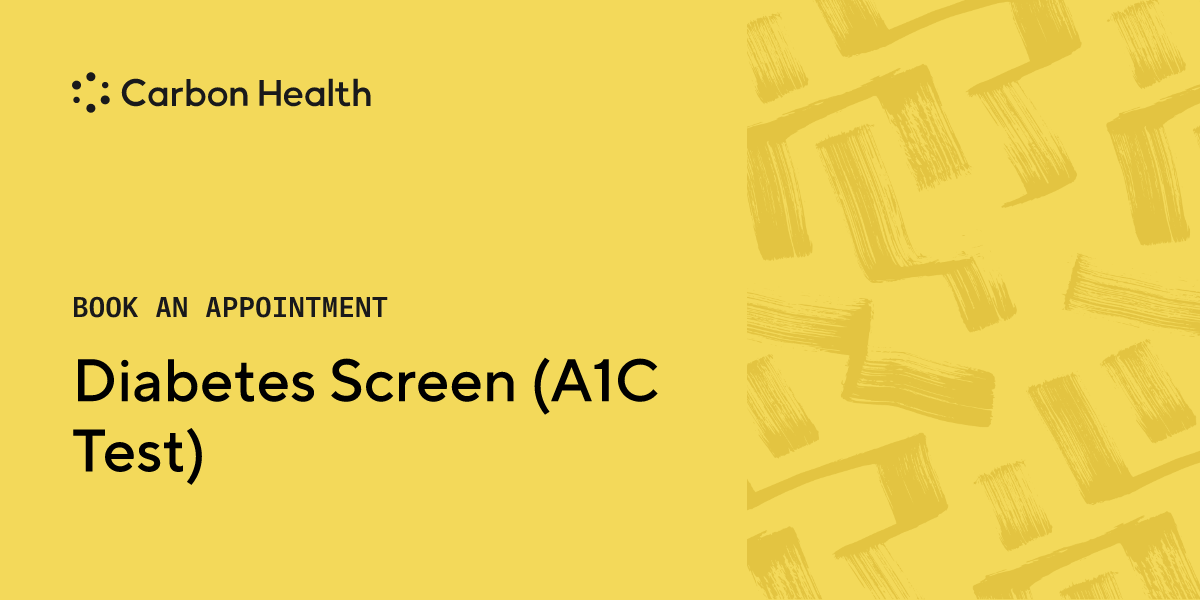 If you show symptoms of diabetes, your healthcare provider may order a diabetes screen. The most common type of screening is an A1C test, which will measure your blood sugar (glucose) levels. A high score will indicate you are at risk for developing diabetes, but it does not confirm diabetes on its own. Schedule a visit and get tested at Carbon Health.