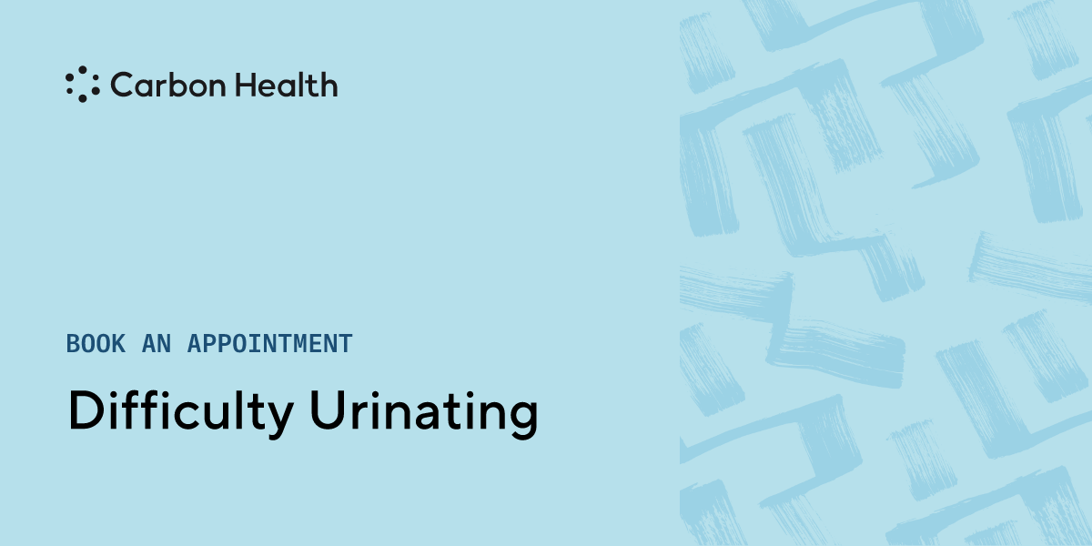 Difficulty urinating is common and often times these difficulties can develop as a person grows older. The cause may not be a physical illness, like anxiety, but if your inability to urinate is disruptive or concerns you, speak to a Carbon Health professional. This is especially true if you feel any pain while attempting to urinate.