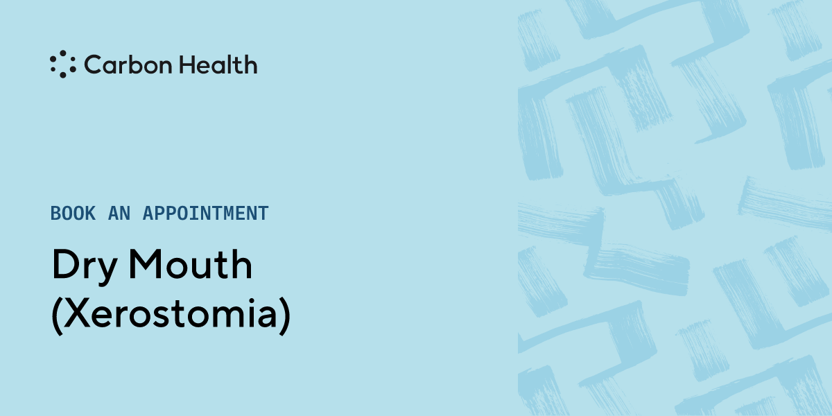 A dry mouth (xerostomia) is rarely caused for concern, as it just means your saliva glands haven't produced enough saliva. It normally can be fixed with a cup of water, but if you experience a persistent or painful dry mouth, schedule a visit at a nearby Carbon Health. It could be an effect of medication or illness.