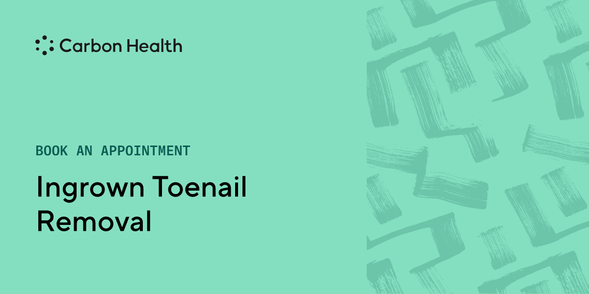 Sometimes a person's toenail will grow into the skin, often as a result of damage or breakage on the nail. Ingrown toenails can be painful and might lead to infection, so safe removal is the best course of action. Speak to a Carbon Health clinician about removal, as removing an ingrown toenail at home can cause infection. You might also need antibiotics after removal.