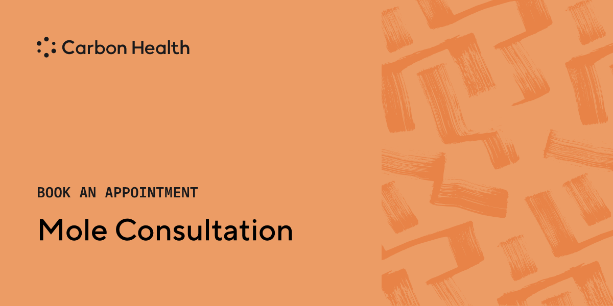 Moles are small brown spots that grow on a person's skin. Developing moles is common, but most of these growths are harmless. After examination Carbon Health professionals can let you know if removal is necessary or an option. Schedule an appointment especially if your mole changes in size or color, or if it begins to bleed or fall off.
