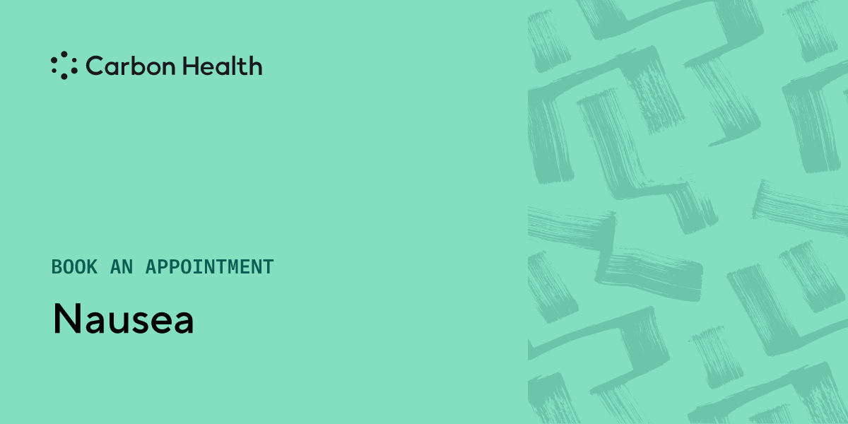 Nausea is a queasy feeling in your stomach that makes you feel like you might vomit. There are lots of reasons why you might experience nausea, like dehydration, anxiety, and stomach viruses. Talk with a nearby Carbon Health if your nausea occurs frequently or doesn't go away after a couple of days.