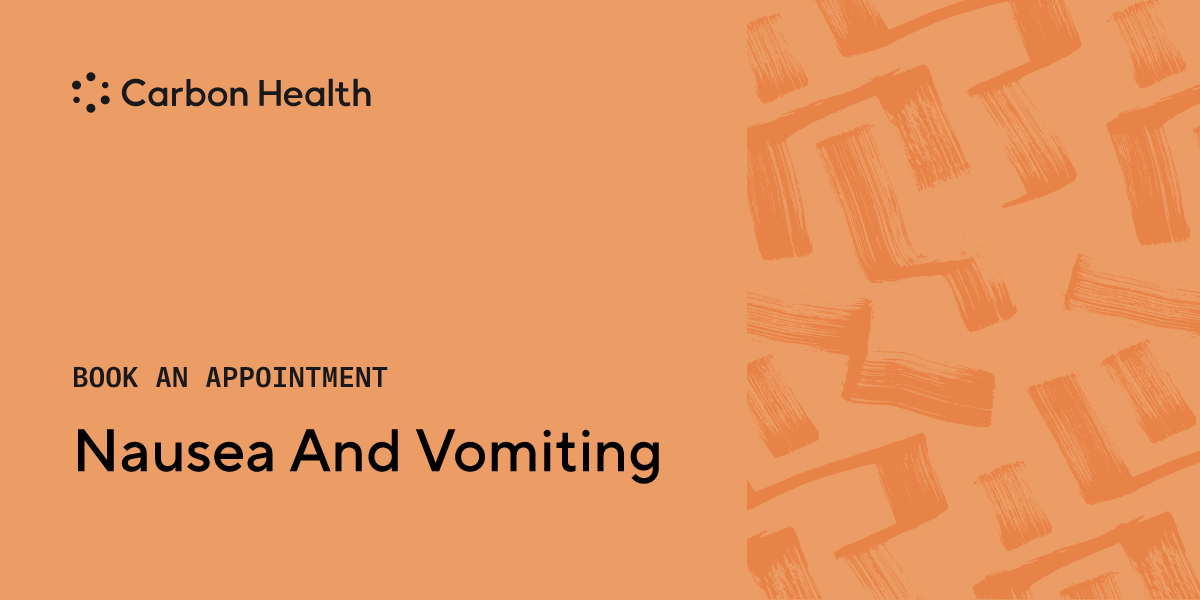 Feeling nauseous can often lead to vomiting. Most causes of vomiting are not serious but visit a nearby Carbon Health if you vomit for more than two days, vomit blood, or have diarrhea with vomiting. With young children, it's important to watch for sunken eyes, rapid breathing, and fever. Seek immediate medical attention if you or your child has these symptoms.