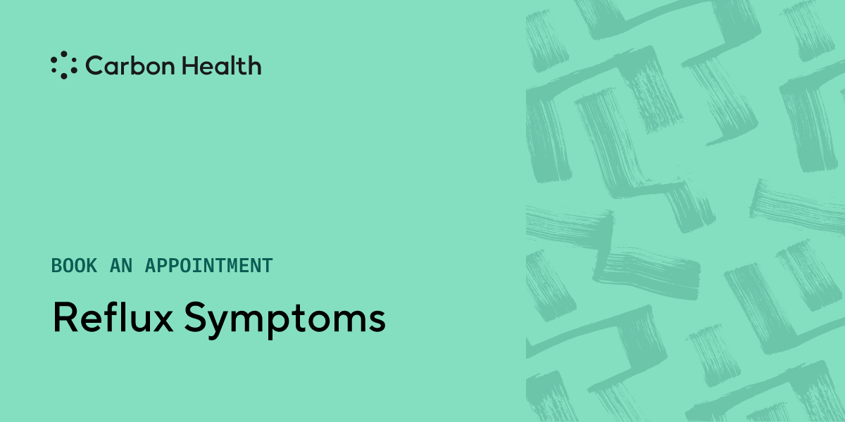 Acid reflux is characterized by symptoms of a burning sensation in the throat and chest caused by stomach acid. Acid reflux tends to come and go, aggravated by certain foods, stress, and laying down. If you have recurring symptoms of acid reflux, schedule a visit with a nearby Carbon Health.